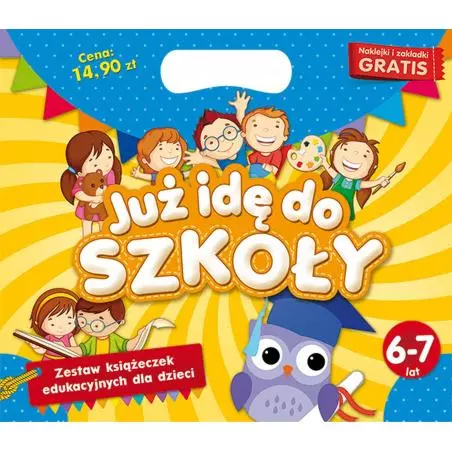 Teczka Już idę do szkoły 6-7 lat zawiera trzy książeczki; Lubię cyferki i naklejam, Czytam sylabami, Klub Sześciolatka.