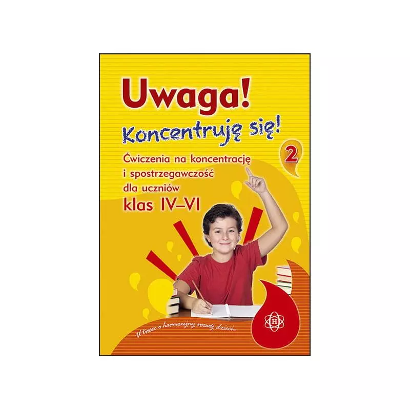 W książce znajduje się zbiór ćwiczeń doskonalących koncentrację uwagi dla uczniów klas IV–VI. Zadania polegają na przykład na wyszukiwaniu różnic, dobieraniu par, zabawach wyrazowych, przerysowywaniu figur. Dziecko wykonując ćwiczenia, oprócz doskonalenia koncentracji uwagi, rozwija także wiele innych funkcji: kształci percepcję wzrokową i orientację przestrzenną, trenuje pamięć i logiczne myślenie, usprawnia motorykę małą i koordynację wzrokowo-ruchową. Zadania pomyślane są tak, aby uczeń nie nudził się, ale w przyjemny i pożyteczny sposób spędzał wolny czas.