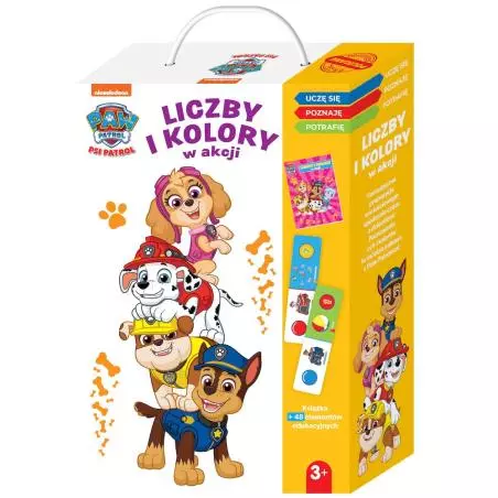 Edukacyjna seria produktów 'Uczę się, poznaję, potrafię' z uwielbianymi przez dzieci bohaterami Psiego Patrolu. W kartonowym pudełku z rączką poza książką znajdziemy elementy edukacyjne wspierające rozwój przedszkolaka w najważniejszych obszarach. W pudełku ksiażka 'Liczby i kolory w akcji' oraz 48 elementów z liczbami i kolorami. To