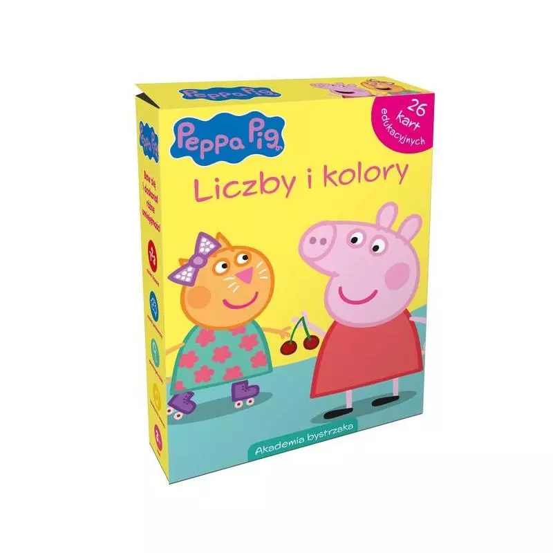 Nauka przez zabawę to świetny sposób na zdobywanie wiedzy! Peppa i przyjaciele zapraszają do akademii bystrzaków. W pudełko przedszkolak znajdzie 26 dwustronnych kart obrazkowych, dzięki którym rozpocznie pierwsze lekcje matematyki. Będzie uczył się liczyć i rozpoznawał kolory. W środku maluch odkryje również mnóstwo zabaw rozwijających