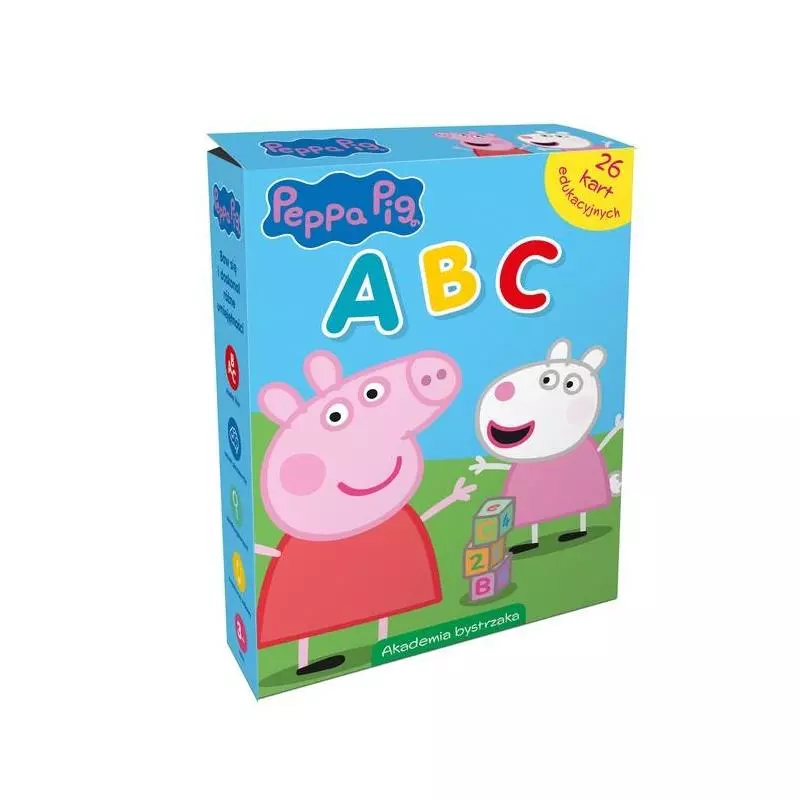 Nauka przez zabawę to świetny sposób na zdobywanie wiedzy! Peppa i przyjaciele zapraszają do akademii bystrzaków. W pudełku przedszkolak znajdzie 26 dwustronnych kart obrazkowych, dzięki którym pozna alfabet, będzie szukał wyrazów zaczynających się na daną literę i przygotowywał się do nauki czytania. W środku maluch odkryje również