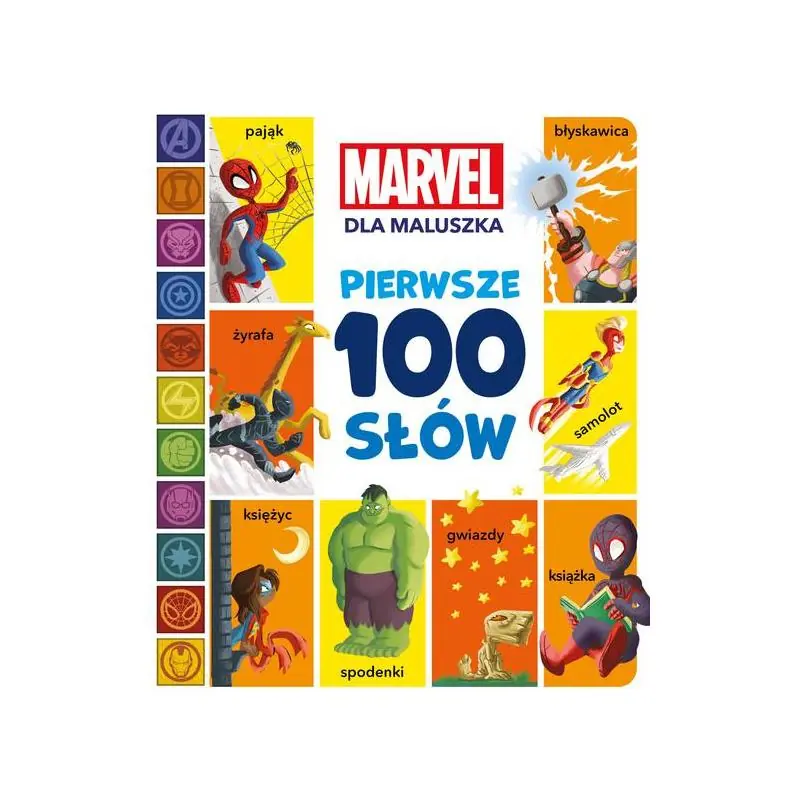 W tej pięknie zilustrowanej książeczce postaci z uniwersum Marvela zaprezentują 100 przedmiotów. Dzięki niej dzieci wzbogacą słownictwo, nauczą się łączyć słowa z ich znaczeniami i poćwiczą nazywanie rzeczy z najbliższego otoczenia.