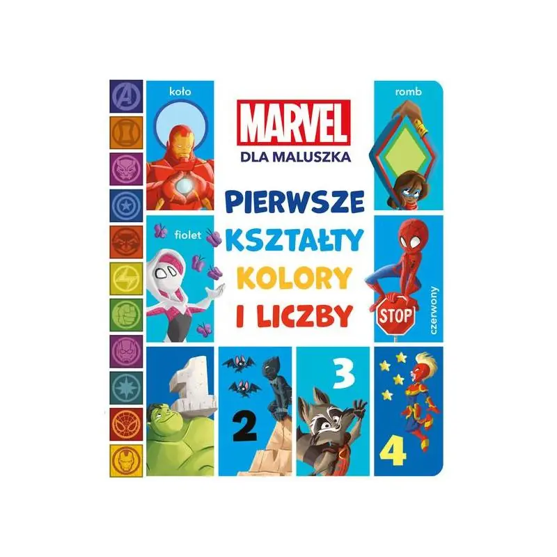 Poznawaj świat z superbohaterami W tej pięknie zilustrowanej książeczce postaci z uniwersum Marvela zaprezentują liczby, kształty i kolory. Dzięki niej dzieci wzbogacą słownictwo, nauczą się łączyć słowa z ich znaczeniami i poćwiczą nazywanie rzeczy z najbliższego otoczenia.