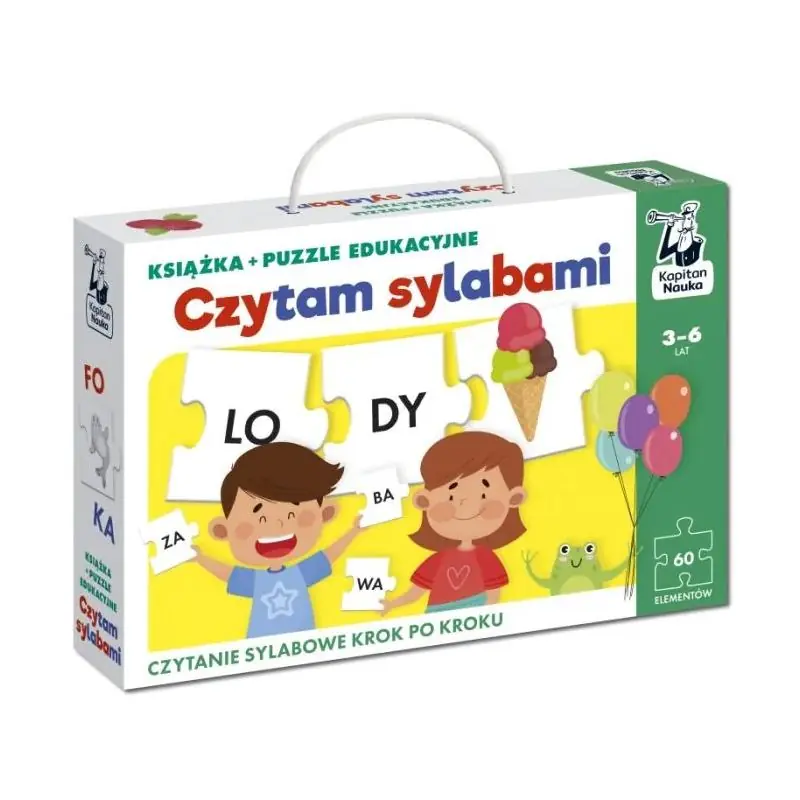 Uzupełnieniem zabaw w książeczce są dołączone do zestawu dwustronne puzzle z barwnymi obrazkami i sylabami. Z puzzli można układać łatwiejsze dwu- i trzysylabowe wyrazy z sylabami otwartymi, takie jak: foka czy papuga, oraz trudniejsze wyrazy, zawierające więcej spółgłosek, np. koniczyna, długopisy.