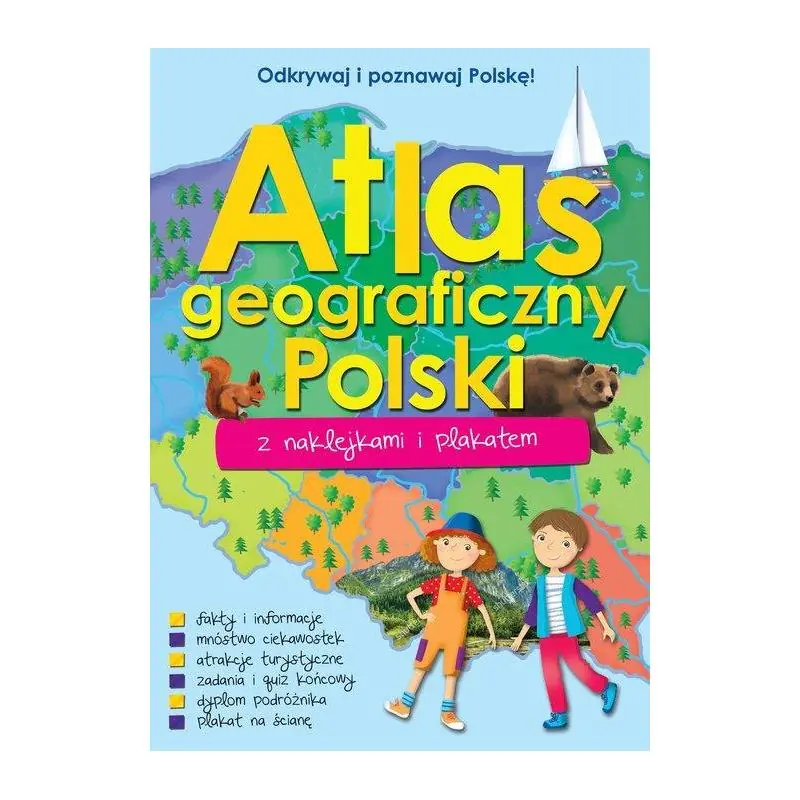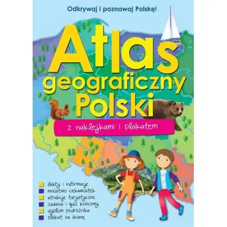 Nowe atlasy z naklejkami i plakatem, które w naturalny sposób łączą naukę z zabawą. Atlas geograficzny Polski zawiera informacje o parkach narodowych i krajobrazowych, zwierzętach i roślinach Polski, podziale administracyjnym, rekordach geograficznych oraz pokazuje Polskę na tle mapy świata. Miłym dodatkiem do atlasu jest plakat. Atlas Europy zawiera mapę Europy, podział polityczny, krainy geograficzne, informacje na temat ludności poszczególnych państw oraz Unii Europejskiej. W środku dzieci znajdą kolorowe naklejki, które należy umieścić w konkretnych miejscach.