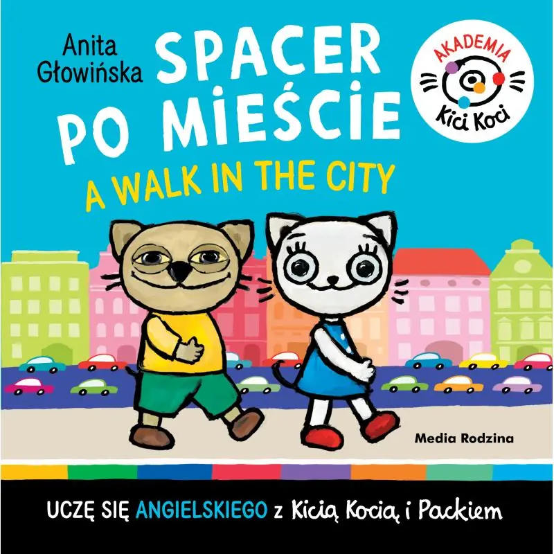 Akademia Kici Koci. Spacer po mieście. A walk in the city, czyli ucz się angielskiego z rezolutną Kicią Kocią i jej braciszkiem! Tym razem Kicia Kocia i Pacek planują spacer po mieście, a najmłodsi czytelnicy odkrywają wraz z nimi świat i uczą się przydatnych słówek i zwrotów.