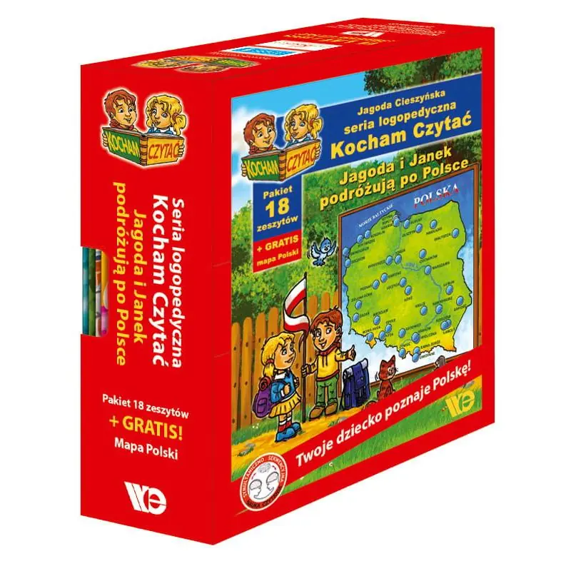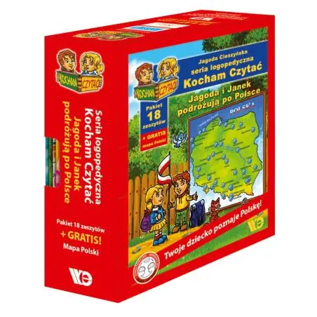 Seria logopedyczna "Kocham Czytać. Jagoda i Janek podróżują po Polsce": do wczesnej nauki czytania dla dzieci w wieku przedszkolnym oraz starszych, zagrożonych dysleksją, wadami wymowy, do nauki czytania dla dzieci dwujęzycznych, do nauki o Polsce w szkołach polonijnych, – 18 zeszytów – opowiadań o polskich miastach, ważnych historycznie