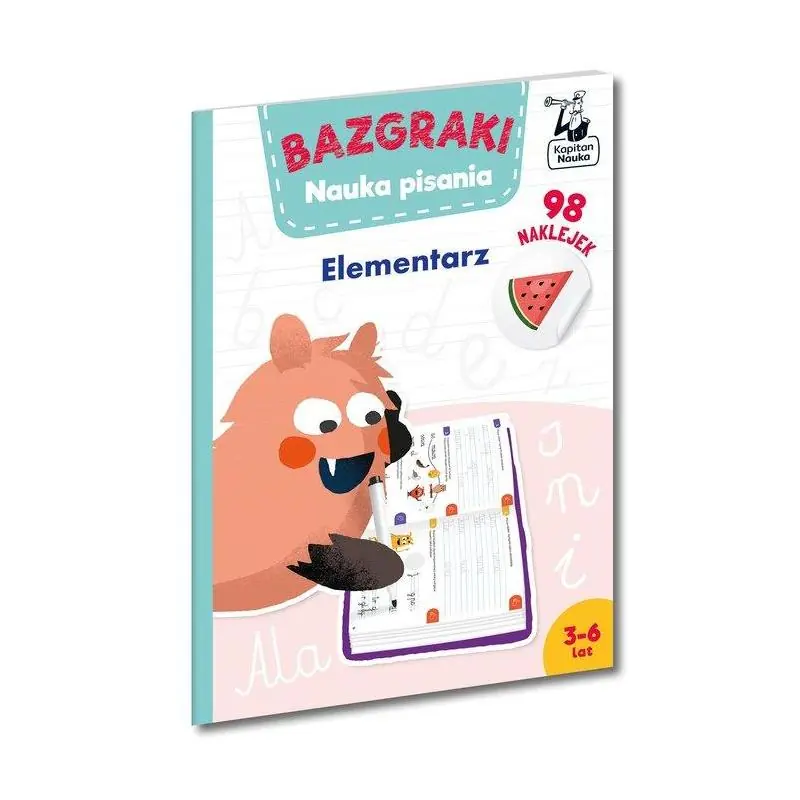 Bazgraki. Nauka pisania. Elementarz (3–6 lat) to książka z ćwiczeniami dla przedszkolaków, które uczą się pisać. Dzięki różnorodnym zabawom grafomotorycznym ćwiczą rozpoznawanie wszystkich liter polskiego alfabetu i właściwy kierunek ich kreślenia, a łączenie poszczególnych liter trenują w liniaturze, by przygotować się do pisania