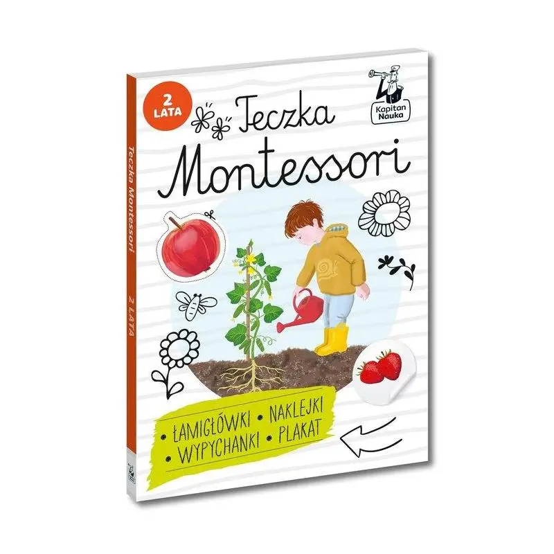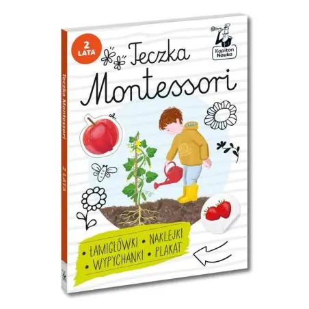 Zabawy, które pomogą odkrywać świat wszystkimi zmysłami! Teczka Montessori. 2 lata to zbiór rozwijających aktywności, który pomoże przedszkolakom odkrywać otaczający je świat. Zabawy i zadania bazują na wrażeniach sensorycznych, dzięki czemu dziecko może zdobywać wiedzę w najbardziej naturalny dla niego sposób – poprzez doświadczenie i działanie. W teczce znajduje się zeszyt ćwiczeń - ilustrowana książeczka z zadaniami. Prosta fabuła angażuje małego czytelnika i rozbudza wrodzoną ciekawość dziecka. Wraz z bohaterami maluch poznaje codzienne czynności i świat natury, a przy okazji ćwiczy umiejętność logicznego myślenia i uczy się rozpoznawania kolorów, kształtów i innych cech otaczających go przedmiotów. Bogate materiały dodatkowe rozwijają sprawność manualną, spostrzegawczość, koncentrację oraz wzbogacają słownictwo. W teczce znajdują się: naklejki, plakat z elementami do wyszukiwania oraz karty do wycinania i wypychania, które pozwalają utrwalić zagadnienia poruszane w książeczce, a po pierwszej prezentacji mogą również służyć do samodzielnej zabawy. Całość dopełnia praktyczna teczka, która pozwoli w uporządkowany sposób przechowywać wszystkie materiały. W Teczce Montessori. 2 lata znajdziecie: zeszyt ćwiczeń - prosta fabuła, łamigłówki, poznawanie przyrody, rozróżnianie kształtów i kolorów, karty z elementami do wypychania i wyciniania - zestawy aktywności do samodzielnej zabawy, rozwój myślenia logicznego i motoryki małej, plakat – pełna szczegółów wyszukiwanka wspierająca rozwój spostrzegawczości i mowy naklejki - atrakcyjny sposób rozwiązywania zadań i ćwiczenie sprawności paluszków. Kapitan Nauka to marka, która powstała dzięki rodzicom poszukującym mądrej, pełnej radości, ale i wymagającej rozrywki dla dzieci. Skupiamy się na zagadkach, grach, puzzlach i książeczkach, które uczą przez kreatywną zabawę i wspomagają rozwój dziecka. Produkty Kapitana Nauki dostosowane są do potrzeb dzieci od narodzin do 11. roku życia. Stymulują rozwój kluczowych umiejętności, takich jak koncentracja, pamięć, spostrzegawczość, myślenie logiczne, kreatywność. Są świetną alternatywą dla smartfona czy komputera, a czas spędzony przy wspólnych rozgrywkach, w gronie rodziny lub rówieśników wzmacnia więzi i umiejętności komunikacyjne.