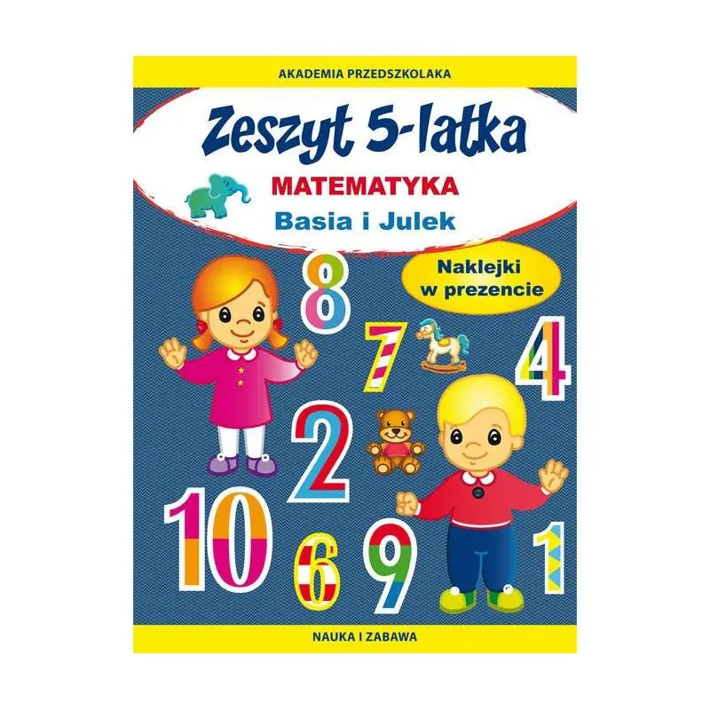 Doskonałe połączenie nauki i zabawy dla pięciolatków – dzieci rozwiązują różnorodne zadania edukacyjne, kolorują obrazki i wklejają naklejki we właściwe miejsca. Dodatkowe atuty tej książki to duże, wyraźne ilustracje z grubymi konturami i tematyka związana z edukacją przedszkolną. Polecamy również książkę „Zeszyt 5-latka. Zanim pójdę do szkoły. Basia i Julek”.