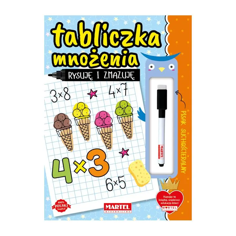 Kolorowe i atrakcyjne ćwiczenia matematyczne oparte na zabawie pomagają dziecku przyswoić tabliczkę mnożenia. Skrupulatność i regularność rozwiązywaniu zadań wprowadzają dziecko w świat nauki, pokazując, że matematyka może być inspirująca. Dodany flamastersuchościeralny wspomaga dziecko w poprawianiu zadań.