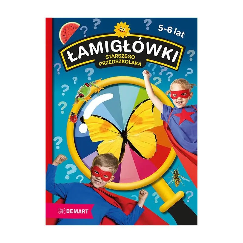 Książka z różnorodnymi łamigłówkami, zagadkami, szyfrowankami, zgadywankami dla dzieci w wieku 5-6 lat.