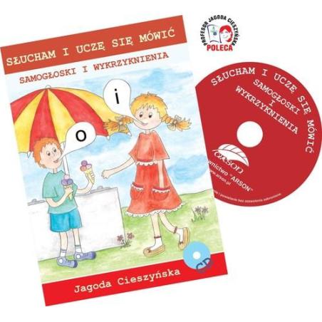 Prawidłowa artykulacja samogłosek ma zasadnicze znaczenie dla wyrazistości wymowy, a tym samym do bycia rozumianym. Małe dziecko rozpoczyna ćwiczenie wokalizowania samogłosek już pod koniec drugiego miesiąca życia. W gaworzeniu niemowlęcym można usłyszeć wiele samogłosek, które nie występują w języku polskim. Dopiero w szóstym miesiącu życia utrwalają się samogłoski charakterystyczne dla języka etnicznego. Należy pamiętać, że kategorie samogłoskowe mają znacznie większą niż spółgłoski skłonność do nakładania się na siebie.Samogłoski mają także wiele wariantów regionalnie i społecznie uwarunkowanych. To właśnie po brzmieniu samogłosek można łatwo rozpoznać, czy ktoś urodził się wychował na Śląsku, czy na Wybrzeżu. Artykulacja samogłosek zdradza też nasze pochodzenie, gdy porozumiewamy się w obcym języku. Ćwiczenia powinny odbywać się codziennie przez 6 minut, czas ten może zostać podzielony na dwie sesje. Warunkiem koniecznym jest użycie słuchawek. Takie postępowanie jest uzasadnione badaniami klinicznymi. Podczas słuchania dziecko musi być odgrodzone od innych bodźców dźwiękowych oraz mieć bezpośrednią stymulację analizatora słuchu. Pomoc przeznaczona jest dla dzieci: - dwujęzycznych - niedosłyszących - z niezakończonym rozwojem mowy - z wadami wymowy - z afazja i alalią - z zaburzeniem komunikacji językowej - z zaburzeniami rozwojowymi i genetycznymi Praca z książeczką Samogłoski i wykrzyknienia poprawia koncentrację i uwagę dziecka oraz stanowi pierwszy etap w nauce czytania metodą symultaniczno-sekwencyjną