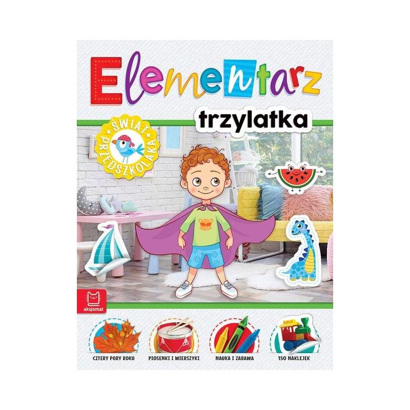 Książkę polecamy do nauki i zabawy wszystkim 3-latkom. Znajdą tu: • ćwiczenia rozwijające logiczne myślenie, • szlaczki, labirynty i kolorowanki przygotowujące do nauki pisania, • wiersze, zagadki, łamigłówki i historyjki obrazkowe, • piosenki z zapisem nutowym i możliwością pobrania bezpłatnych nagrań, • cztery arkusze naklejek do zadań edukacyjnych.