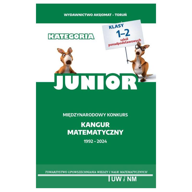 Testy konkursu międzynarodowego "KANGUR MATEMATYCZNY" wraz z rozwiązaniami, począwszy od 1992 roku dla poziomu wiekowego "JUNIOR" (klasy III gimnazjów, I liceów i techników, I, II, III szkół branżowych) . Całkiem nowy, ciekawy i kolorowy skład. Testy zadań konkursowych na inne poziomy znajdziesz w kolejnych tomach serii "Matematyka z wesołym Kangurem". Ta książka jest następcą tzw. "niebieskiego" kangura, który począwszy od roku 2015 został rozdzielony na dwie książki - osobną dla poziomu Kadet i Junior. Książka zawiera zadania, odpowiedzi oraz rozwiązania z Kangura Matematycznego dla poziomu Junior (klasy III gimnazjów, I liceów i techników, I, II, III szkół branżowych) z lat 1992-2024.