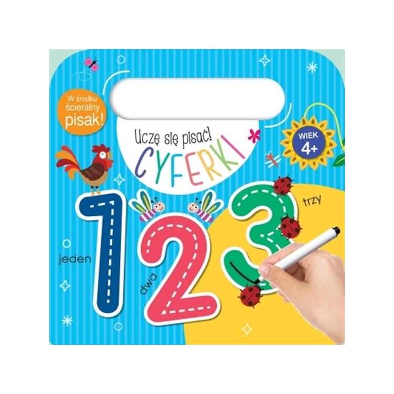 Ta niezwykła książka przybliży dziecku świat cyferek. Maluch dowie się, jak prawidłowo je pisać, a potem będzie każdą cyferkę kreślił po śladzie. Zadanie ułatwi mu ścieralny pisak i odpowiednio przygotowane kartonowe strony. Kolorowe obrazki pomogą przy określaniu ilości i sprawią, że nauka będzie prawdziwą zabawą!