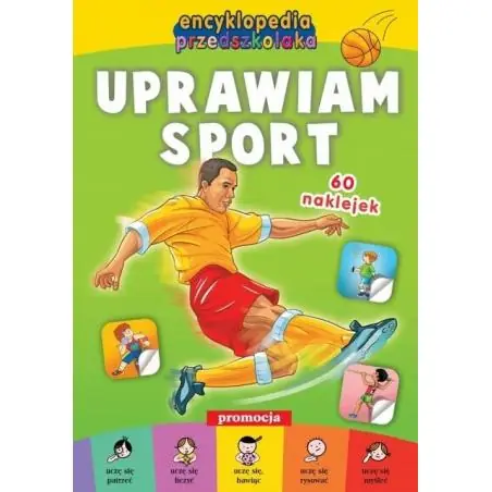 Ta książeczka to propozycja dla każdego dziecka, które interesuje się sportem. Dzięki ciekawym zadaniom jego wiedza o sporcie poszerzy się, a nauka połączona z zabawą stanie się przyjemnością. Logiczne myślenie i kojarzenie, spostrzegawczość, koncentracja i zręczność manualna to sprawności, które dziecko rozwinie, wykonując ćwiczenia o różnym stopniu trudności. W ten sposób przygotuje się do nauki czytania, pisania i liczenia. Wiedza i umiejętności zdobywane od najmłodszych lat sprawiają, że dziecko czuje się bezpieczne – przede wszystkim potrafi odnaleźć się w grupie rówieśników i umie porozumiewać się z dorosłymi. Mając taką podstawę, chętniej się uczy i wyraża własne opinie, myśli twórczo i jest aktywne. W książeczce znajdują się ćwiczenia o różnym stopniu trudności. Polegają one m.in. na opisywaniu rysunków, dobieraniu w pary, rysowaniu po śladzie, poszukiwaniu drogi w labiryncie, łączeniu punktów, wyszukiwaniu różnic między rysunkami, uzupełnianiu rysunków za pomocą nalepek oraz rozwiązywaniu zagadek. Przejrzyste czarno-białe ilustracje dziecko może pomalować, a kolorowe nalepki (60 sztuk) – wykorzystać do rozwiązywania zadań. Przy każdym poleceniu znajduje się informacja o tym, jakie zdolności i umiejętności dziecko rozwija, wykonując dane ćwiczenie.