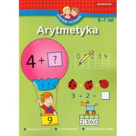 Jestem uczniem to seria książek wspomagających rozwój dziecka w wieku przedszkolnym i wczesnoszkolnym. Arytmetyka jest zbiorem ćwiczeń dla sześciolatków. Dzięki nim dziecko: zrozumie pojęcie zbioru pozna cyfry pozna porządek liczb o 0 do 30 nauczy się dodawać oraz odejmować podejmie próby rozwiązywania prostych zadań tekstowych. Książka