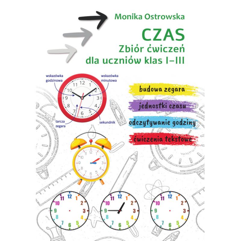 - Pokazuje, jak odczytywać czas na różnych zegarach