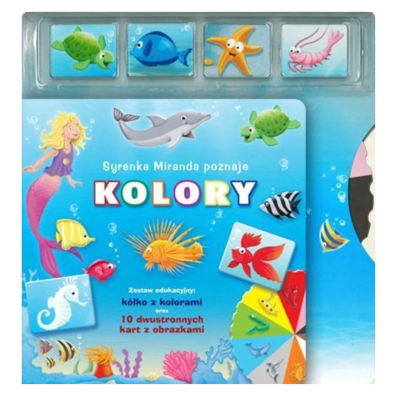 Syrenka Miranda dostała ważne zadanie: w morskich głębinach ma znaleźć zwierzęta w różnych kolorach. Na pewno zechcesz jej pomóc! Słuchaj wierszyka, wybieraj odpowiednie karty z obrazkami, żeby uzupełnić ilustracje, i zapamiętuj kolory! A potem odpowiadaj na pytania i baw się obrotowym kółkiem.