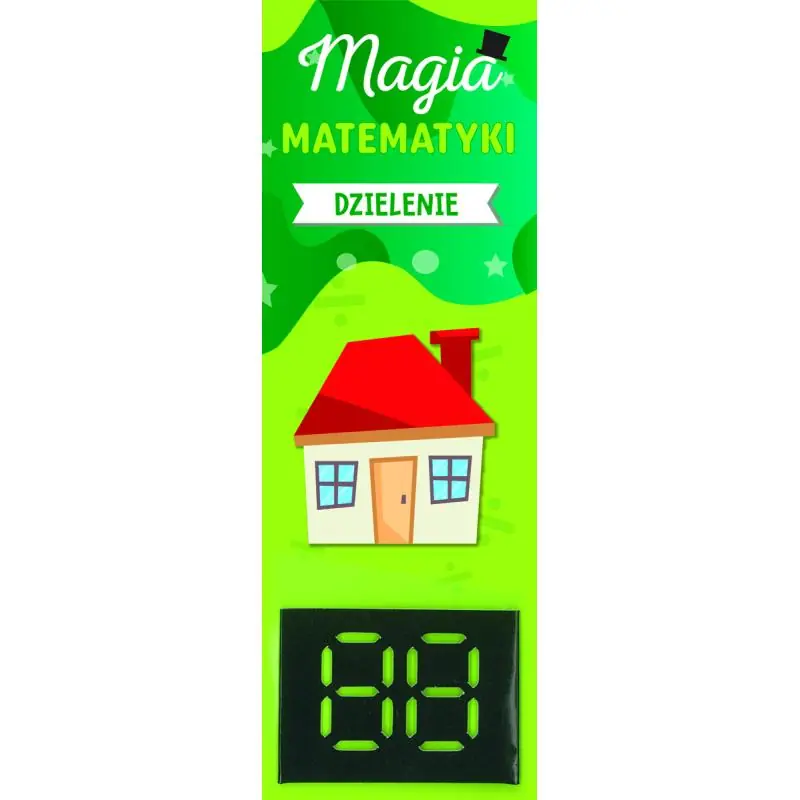 Odkryj magię matematyki! Przekonaj się, że nauka dzielenia może być przyjemna! Zapisz odpowiedź dołączonym markerem. Na każdej z magicznych kart znajdziesz matematyczne działanie. By poznać jego wynik, wystarczy wsunąć kartę do kieszonki na pudełku.