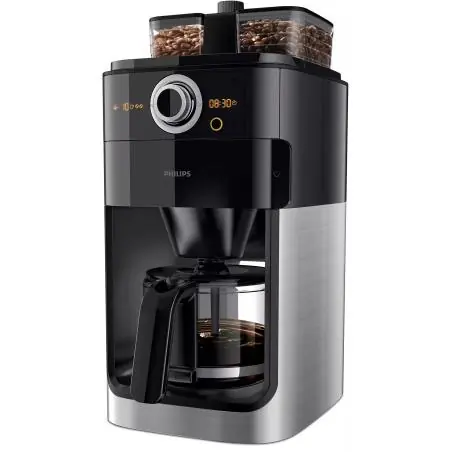 Delektuj się wyśmienitą kawą ze świeżo zmielonych ziaren dzięki ekspresowi Philips Grind & Brew z wbudowanym młynkiem. Wyjątkowy podwójny pojemnik umożliwia wybór spośród dwóch rodzajów ziaren kawy. Dzięki zegarowi możesz budzić się przy zapachu świeżej kawy.