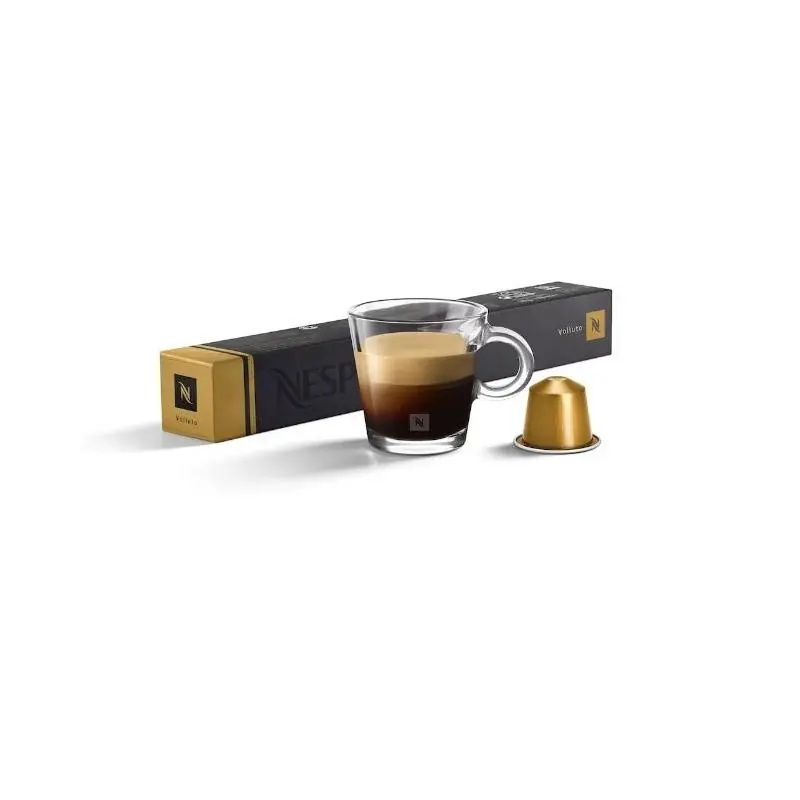 Nespresso Volluto to delikatna, a jednocześnie bogata w aromacie kawa w kapsułkach, stworzona z wyselekcjonowanych brazylijskich i kolumbijskich Arabik. Zbalansowany profil smakowy o intensywności 4/12 sprawia, że jest to idealny wybór dla miłośników łagodniejszych, harmonijnych kompozycji. Średnie palenie nadaje kawie charakterystyczne nuty