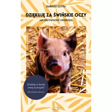 Dziękuję za świńskie oczy to ważny głos w debacie na temat naszego stosunku do innych zwierząt. Autor nie tylko pokazuje, że zwierzęta są niezastąpionym źródłem wiedzy o świecie, w tym o ludziach, ale również jak bardzo potrzebna jest prowegańska polityka rozwoju.