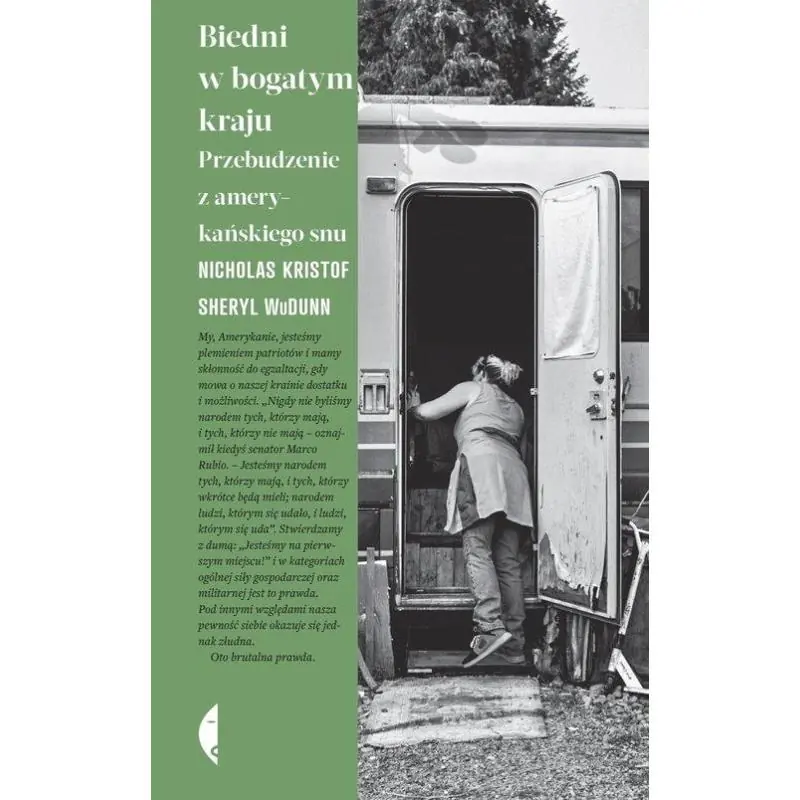 W sondażu przeprowadzonym niedawno w Stanach Zjednoczonych poproszono respondentów, by znaleźli słowo, które ich zdaniem najlepiej opisuje obecne czasy. Wśród ośmiu najczęściej wymienianych określeń znalazły się: „niepokojące”, „chaotyczne”, „wyczerpujące” i „nerwowe”. Jak to możliwe, że Amerykanie stracili wiarę w przyszłość? Co sprawiło, że w jednym z najbogatszych krajów świata nierówności społeczne są porównywalne do tych, z którymi mierzono się w XIX wieku? I dlaczego „amerykański sen” coraz częściej staje się „amerykańskim mirażem”? By to zrozumieć, dziennikarskie małżeństwo – Nicholas Kristof i Sheryl WuDunn – prowadzi nas przez kolejne kręgi amerykańskiego piekła: bezrobocie, uzależnienia, problemy z edukacją i opieką zdrowotną, utrata majątku, ubóstwo wśród wielodzietnych rodzin, przeludnienie. Z reporterską precyzją pokazują, że rzesza ciężko pracujących Amerykanów czuje się niezauważana i nierozumiana, co pogłębia polaryzację, rasizm i nietolerancję i stopniowo zżera tkankę społeczną. Biedni w bogatym kraju to rzetelne studium problemów, z którymi mierzy się amerykańska klasa robotnicza, oraz wyzwań stojących przez rządem USA. To również próba odpowiedzi na pytania o źródła kryzysu i powody, dla których państwo przestało interesować się obywatelami.