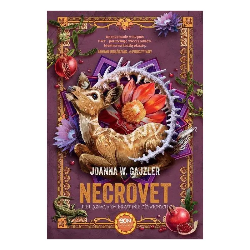 Co jest większym wyzwaniem – życie rodzinne czy kontakty z zaświatami? Do Zrębek wraz z pierwszym śniegiem i uciążliwym mrozem wkrada się świąteczna atmosfera. Jednak zamiast reniferów pojawiają się majestatyczne szadhawary, zamiast świętego Mikołaja – Ada, nieco trudna kuzynka Bastiana, a na strychu gniazdko wije sobie nietypowa zębata współlokatorka. Tymczasem w lecznicy weterynaryjnej nieumarłej doktor Izabeli Pokot kolejni pacjenci dostarczają wyzwań i wrażeń: pojawia się uroczy miraj Bêbal, śmiertelnie niebezpieczny tarask Travel, płochliwy lagopus Partyzant i wiele innych magicznych i całkiem zwyczajnych istot, którym weterynarka i technicy starają się udzielić pomocy. Życie pisze jednak różne scenariusze i nie każda historia ma szczęśliwe zakończenie. Po godzinach zaś Florka nie próżnuje, lecz zagłębia się w nową pasję – postanowiła bowiem zostać techniczką nekromancji… Dokąd ją to doprowadzi? *** Czwarta wizyta w gabinecie doktor Izabeli Pokot to kolejna okazja, by z bliska przyjrzeć się magicznym zwierzętom oraz problemom związanym z ich hodowlą. Autorka ponownie naprowadza nas na refleksję o kwestiach istotnych społecznie, nie tracąc przy tym jednak magicznej lekkości i humoru, za które serię Necrovet pokochały tysiące czytelników. Tym razem uważajcie na taraska Travela i jego toksyczne wyziewy oraz na Florkę, która coraz śmielej poczyna sobie z różdżką! Na zimowe niedobory wszystkiego – pigułka idealna! Ewa Cat Mędrzecka, youtube.com/catvloguje Rozpoznanie wstępne: PWT - potrzebuję więcej tomów. Idealna na każdą okazję. Adrian Bruździak, @podczytany BIOGRAM Joanna W. Gajzler Studiowała twórcze pisanie na Uniwersytecie Łódzkim. Zadebiutowała powieścią Bóg Maszyna, która zdobyła nominację do Nagrody Zajdla za 2021 rok. Zawodowo techniczka weterynarii, która kocha herbatę i własne stadko zwierzaków, towarzyszących jej podczas wszystkich procesów twórczych. W 2023 roku nakładem wydawnictwa SQN Imaginatio ukazał się Necrovet. Usługi weterynaryjno-nekromantyczne. Historia skradła serca dziesiątek tysięcy czytelników. Laureatka plebiscytu Fantastycznie Utalentowani.