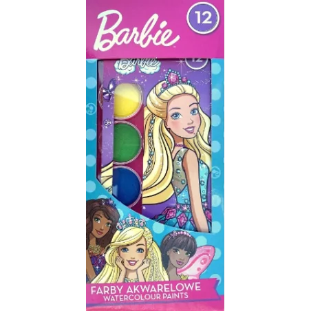 FARBY AKWARELOWE 12 KOLORÓW BARBIE 3+ - St. Majewski