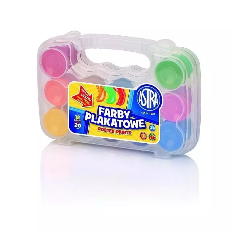 Farby plakatowe Astra w zestawie 12 kolorów to klasyczny wybór dla dzieci, uczniów i hobbystów, którzy cenią intensywne barwy i łatwą aplikację. Dzięki kremowej konsystencji farby są łatwe do nakładania, dobrze kryją i szybko schną, co czyni je idealnymi do prac plastycznych w szkole, domu i na zajęciach artystycznych. Produkt bezpieczny, zgodny z normami dla dzieci.
