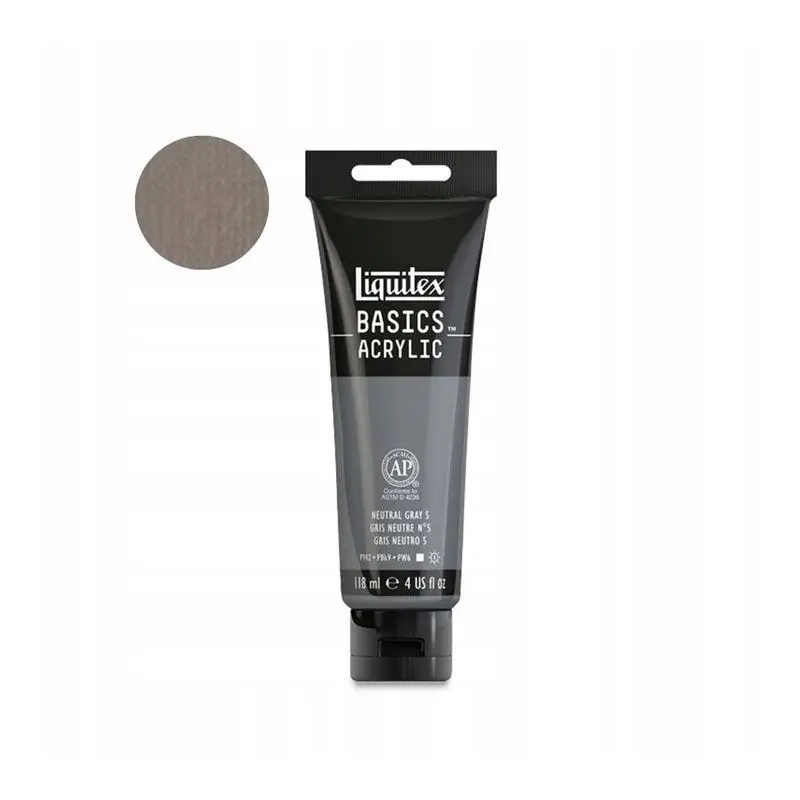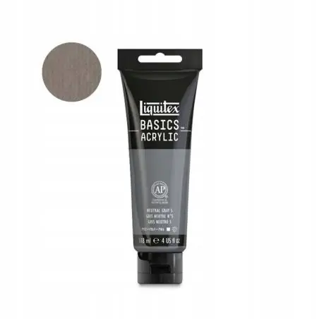 LIQUITEX BASICS studyjne farby akrylowe tuba 118 ml. kolor GREY NEUTRAL VALUE 5