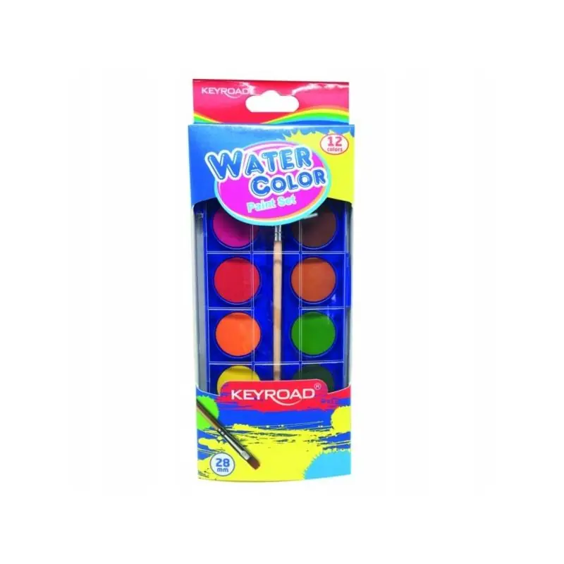 Farby akwarelowe z pędzelkiem Keyroad 12 kolorów to praktyczny zestaw farb wodnych przeznaczony do zajęć plastycznych w szkole i w domu. Intensywne barwy, łatwe rozprowadzanie oraz dołączony pędzelek sprawiają, że komplet jest gotowy do użycia od razu po