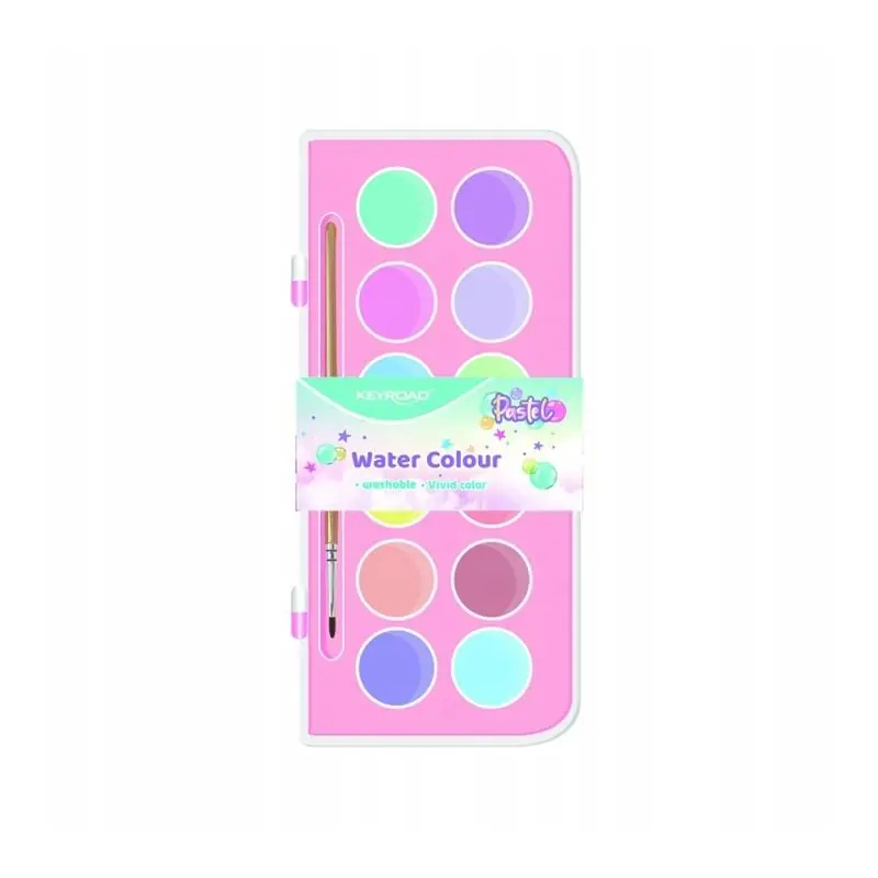 Farby akwarelowe Keyroad 12 kolorów pastelowych z pędzelkiem to praktyczny zestaw do kreatywnego malowania w domu i szkole. Pastelowe odcienie pozwalają tworzyć subtelne, estetyczne prace plastyczne, a dołączony pędzelek umożliwia natychmiastowe