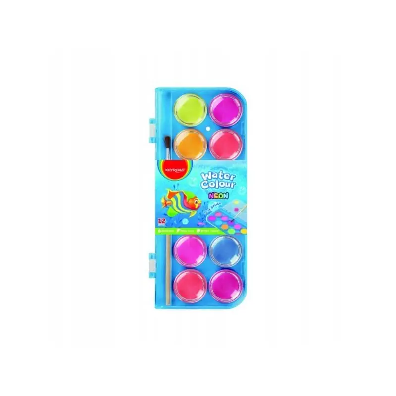Profesjonalny zestaw farb akwarelowych szkolnych KEYROAD zawiera 12 intensywnych kolorów neonowych oraz praktyczny pędzelek do malowania. Idealny do pracy plastycznej dla dzieci w szkole i w domu, zapewnia łatwe mieszanie kolorów i żywe efekty malarskie.