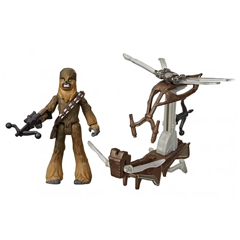 Minifigurka Chewbacca z serii Star Wars Mission Fleet mierzy 7 cm wysokości, jednak bardzo szczegółowo oddaje wygląd filmowego bohatera – ma długie, brązowe futro, pokrywające absolutnie całe jego ciało. Do zestawu dołączono pojazd latający, jakim Chewbacca przemieszczał się po najodleglejszych terenach – do dyspozycji bohatera pozostają również kusze oraz olbrzymie ostrza.
