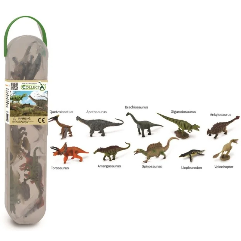 Praktyczne plastikowe pudełko zawiera zestaw 10 mini dinozaurów. To wspaniałe, pięknie zaprojektowane repliki znacznie większych figurek Collecta. Każdy dinozaur został zaprojektowany z dużą starannością i posiada wszystkie wiernie odwzorowane detale.