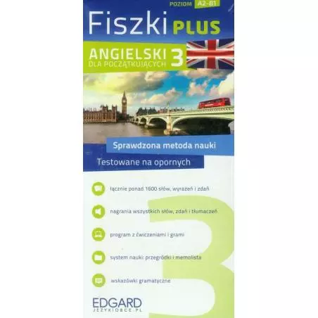 Angielski Fiszki PLUS dla początkujących 3 (A2-B1) to pakiet będący częścią rozbudowanego systemu nauki, dzięki któremu szybko i skutecznie nauczysz się słownictwa na każdym poziomie zaawansowania. Każdy zestaw Fiszek PLUS to starannie przygotowany materiał, wysokiej jakości nagrania wymowy wraz z programem komputerowym, memolistą i grami