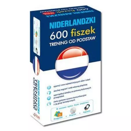 Niderlandzki 600 fiszek Trening od podstaw to wyjątkowy zestaw do nauki języka, który tworzą: 600 ponumerowanych fiszek, płyta z nagraniami MP3 i programem multimedialnym oraz praktyczne pudełko z kolorowymi przegródkami.