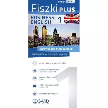 Fiszki PLUS Business English 1 (A2-B1) to pakiet będący częścią rozbudowanego systemu nauki, dzięki któremu szybko i skutecznie nauczysz się słów i wyrażeń niezbędnych w biznesie i w pracy. Każdy zestaw Fiszek PLUS to starannie przygotowany materiał, wysokiej jakości nagrania wymowy wraz z programem komputerowym, memolistą i grami językowymi.