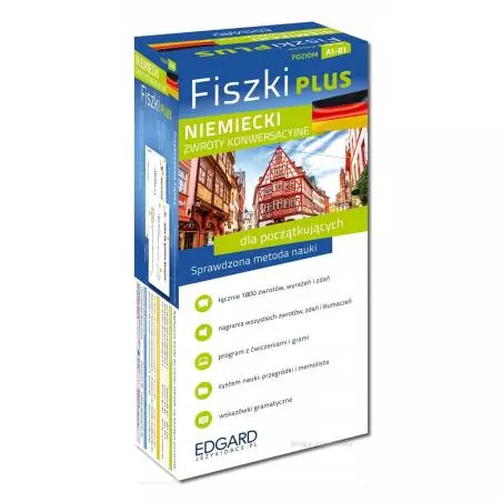 "Fiszki Plus. Zwroty konwersacyjne dla początkujących (A1-B2)" to pakiet będący częścią rozbudowanego systemu nauki, dzięki któremu szybko i skutecznie nauczysz się ważnych zwrotów konwersacyjnych, niezbędnych do swobodnego porozumiewania się po niemiecku. Każdy zestaw Fiszek PLUS to starannie przygotowany materiał, wysokiej jakości