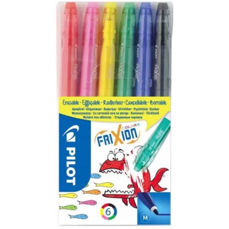 Nowa seria wymazywalnych flamastrów Frixion Colors w 6 głębokich kolorach - od subtelnej żółci, po głęboką czerń! Sprawdzą się idealnie przy pierwszych rysunkach lub nauce kolorowania. Doskonale pobudzą kreatywność, dzięki wielokrotnym możliwościom nanoszenia zmian. Zaszyfrowane wiadomości będą jeszcze bardziej kolorowe! Tusz znika dzięki potarciu silikonową końcówką umieszczoną na skuwce, która idealnie współgra z flamastrem. Rysunek pojawia się ponownie przy temperaturze min. -10°C.