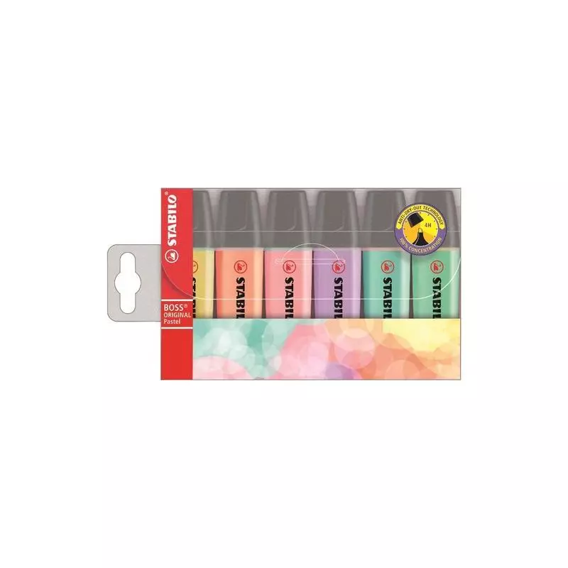 Zakreślacz fluorescencyjny z tuszem na bazie wody do pisania na wszystkich rodzajach papieru również faksowym i samokopiującym . Pozostawiony bez skuwki nie zasycha nawet przez 4 godziny, a po zamknięciu ma właściwości regeneracyjne. Jedyny zakreślacz dostępny aż w 15 kolorach w tym w pastelowych. Szerokość linii od 2 do 5 mm