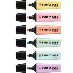 Plastikowe etui zawierające 6 kolorów pastelowych żółty, pomarańczowy, różowy, lilla, turkusowy, zielony