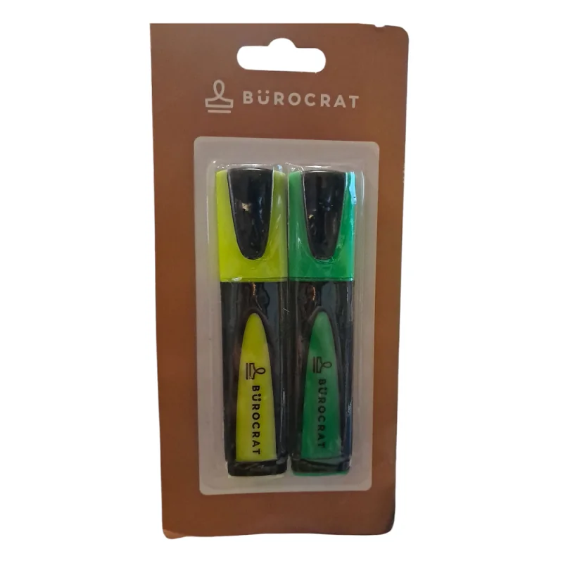Bądź kreatywny razem z zakreślaczami Burocrat . Kompletny zestaw zawiera zakreślacze w żółtym i zielonym kolorze, aby każdy mógł z łatwością zaznaczać swoje notatki, dokumenty i strategie.