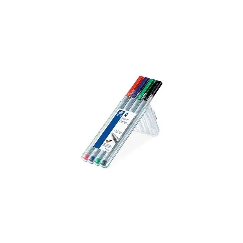 CIENKOPIS KREŚLARSKI 0,3 MM STAEDTLER 4 KOLORY W ETUI to zestaw dla wymagających użytkowników, którzy potrzebują precyzyjnych, trwałych i wygodnych cienkopisów do pracy technicznej, szkolnej lub artystycznej. Praktyczne etui i kolorowy zestaw zapewniają wygodę i organizację.