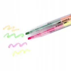 Dwustronne zakreślacze Kidea to praktyczne i stylowe narzędzie do nauki, pracy oraz kreatywnego planowania. Zestaw zawiera 4 intensywne kolory, a każda sztuka wyposażona jest w dwie końcówki: cienką do precyzyjnego podkreślania oraz szeroką do klasycznego zakreślania. To doskonały wybór dla uczniów, studentów i wszystkich, którzy cenią czytelność notatek i estetykę pracy.