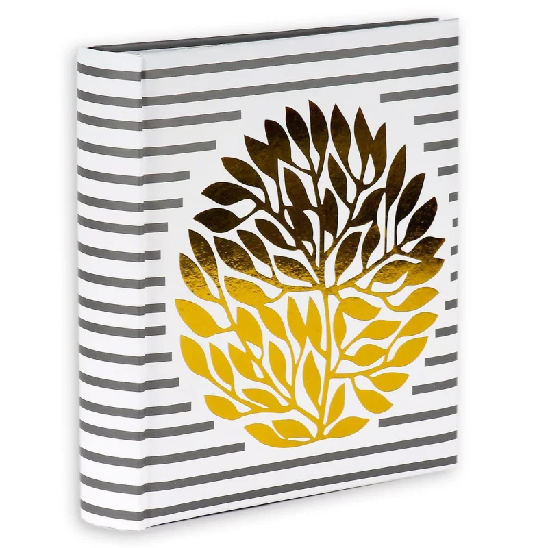 - okładka ozdobiona motywem złotego drzewa na biało-czarnym tle