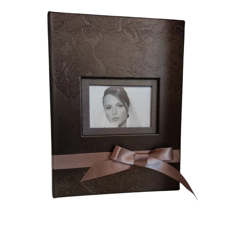 Album z okienkiem idealny do przechowywania prywatnych zdjęć. Czarna oprawa wykonana z tłoczonej ekoskóry imitująca materiał to doskonały pomysł na prezent.